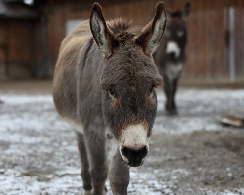 Mein Name ist Benny. Ich bin am 27.06.2000 in der Nähe von Wasserburg am Inn/Bayern geboren. Mein Stockmaß liegt bei 104 cm mit einem Gewicht von ca. 190 kg. Von der Größe bin ich ein Hausesel-Wallach mit grau-braunem Fell.